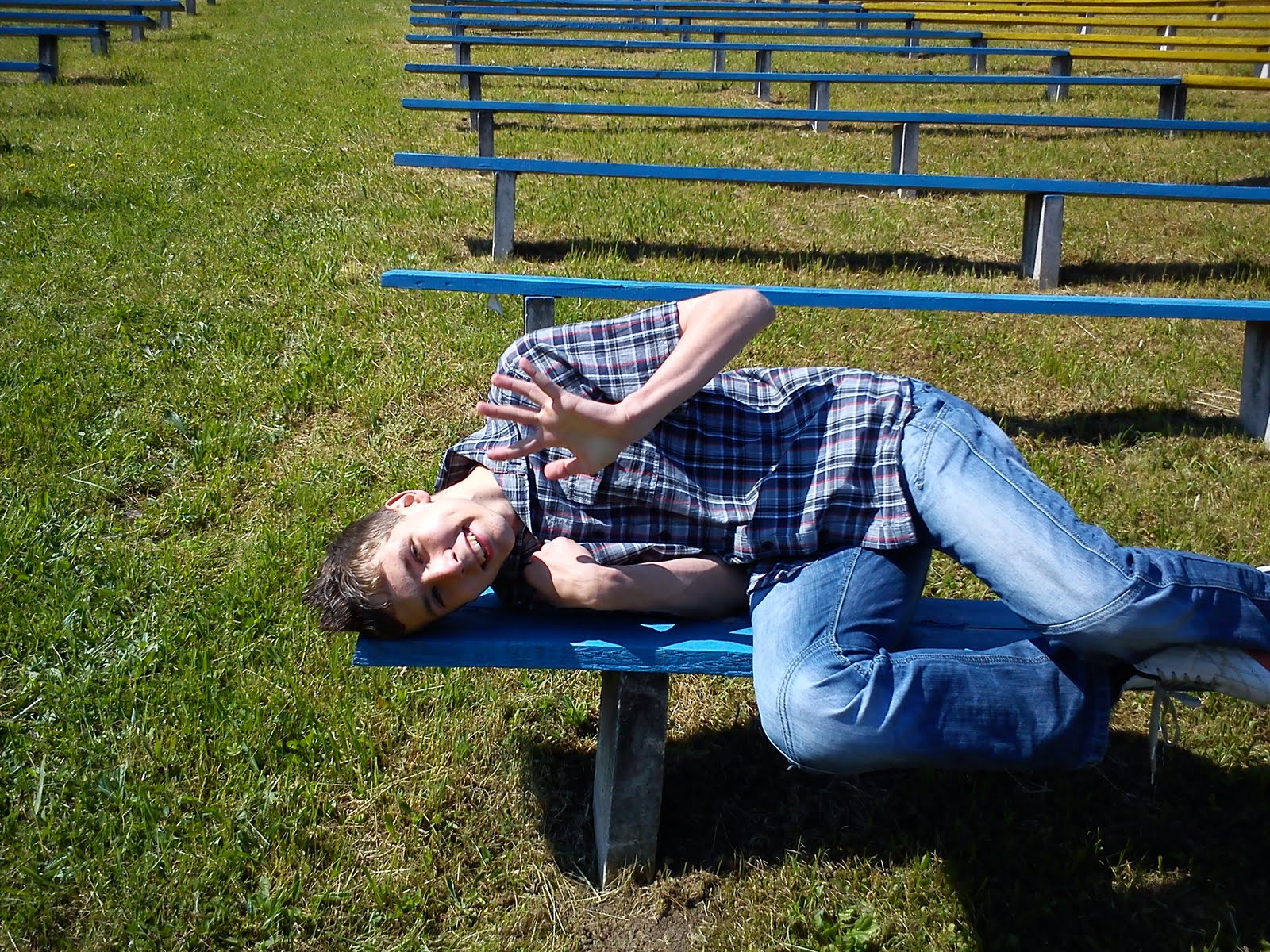 z ľava: Bia, Tomáš, Maťo, Eliš, KarolFotili sme sa na rôznych miestach v okolí školy - s pohľadom na horizont, na detskom ihrisku (to sa k nám hodí, že?), na amfiteátri, pred školou. Fotka vyššie je z amfiteátra. Každý z nás zaujal 'pózu' a potom cvak, fotka bolo hotová. Myslím, že Biina póza prezrádza všetko. Tomáš zrejme fandí hokeju, ale čo robí Eliš s Karolom (?) sa asi nikdy nedozvieme.